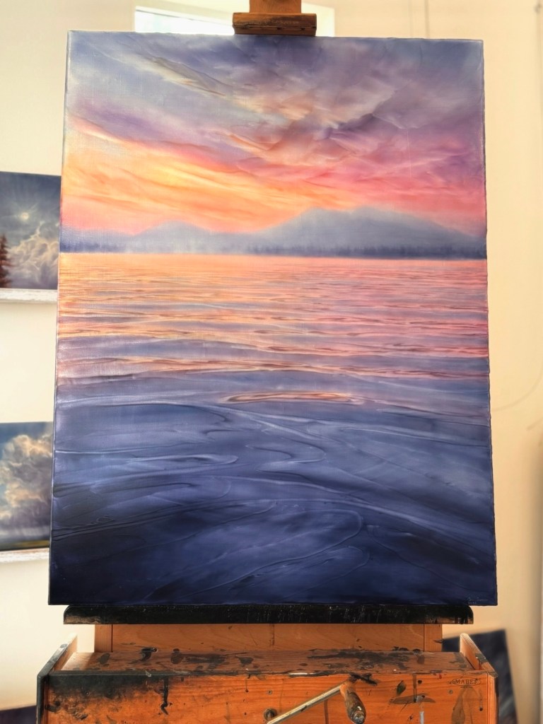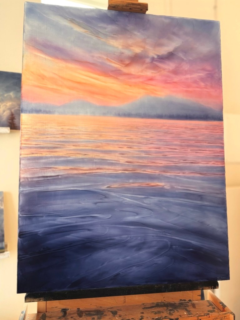 I am working on a number of large scale paintings. Focusing on peaceful meditative imagery. This is my first finished painting of 2026.