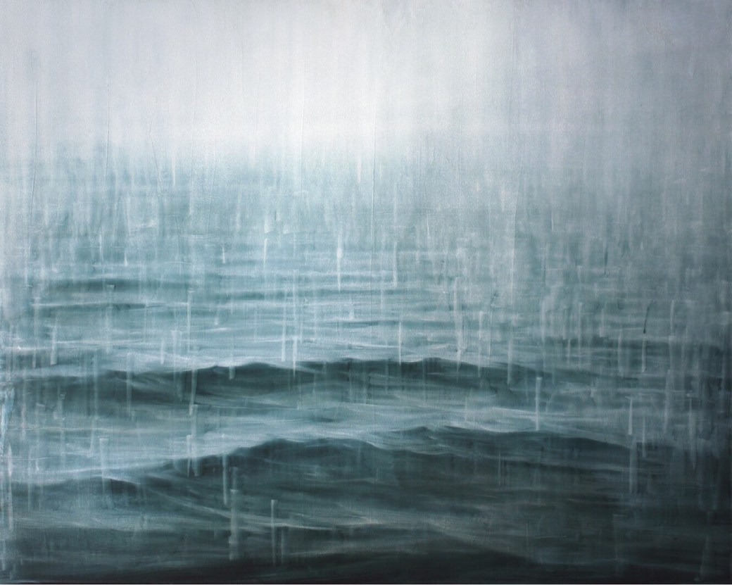 Watching snow fall onto the rough water of Lake Pend Oreille is inspirational! There is a hypnotic quality to the combined movements of drifting flakes and rolling waves. I am playing around with this idea in some recent works, this is one of the larger paintings.