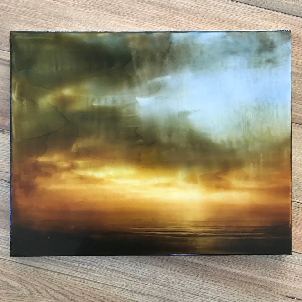This 20″x16″ painting is a recently completed work. My obsession with atmosphere, light and grande expanses motivated this piece.