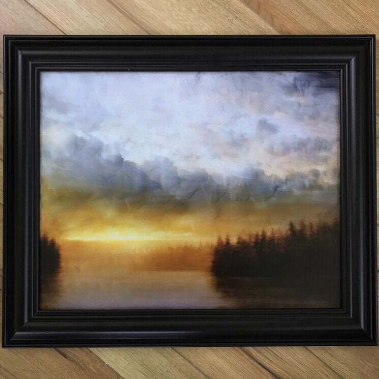 This is a very recent open acrylic painting. The edges of day and night are always inspiring and contemplative. The mood can be tranquil but there is also the reminder of our time passing.