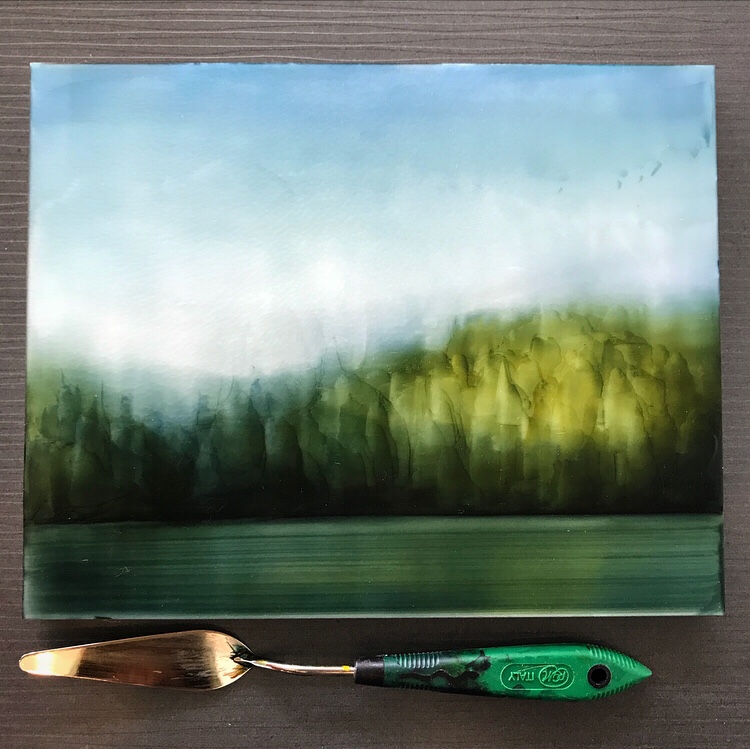 As we march forward into fall I have noticed the changes. The sun is lower in the sky and with more clouds it has made for some glorious skies. It also hits the lake shore with startling intensity at times. This is the inspiration for my most recent works. These forest paintings are 10″x8″.