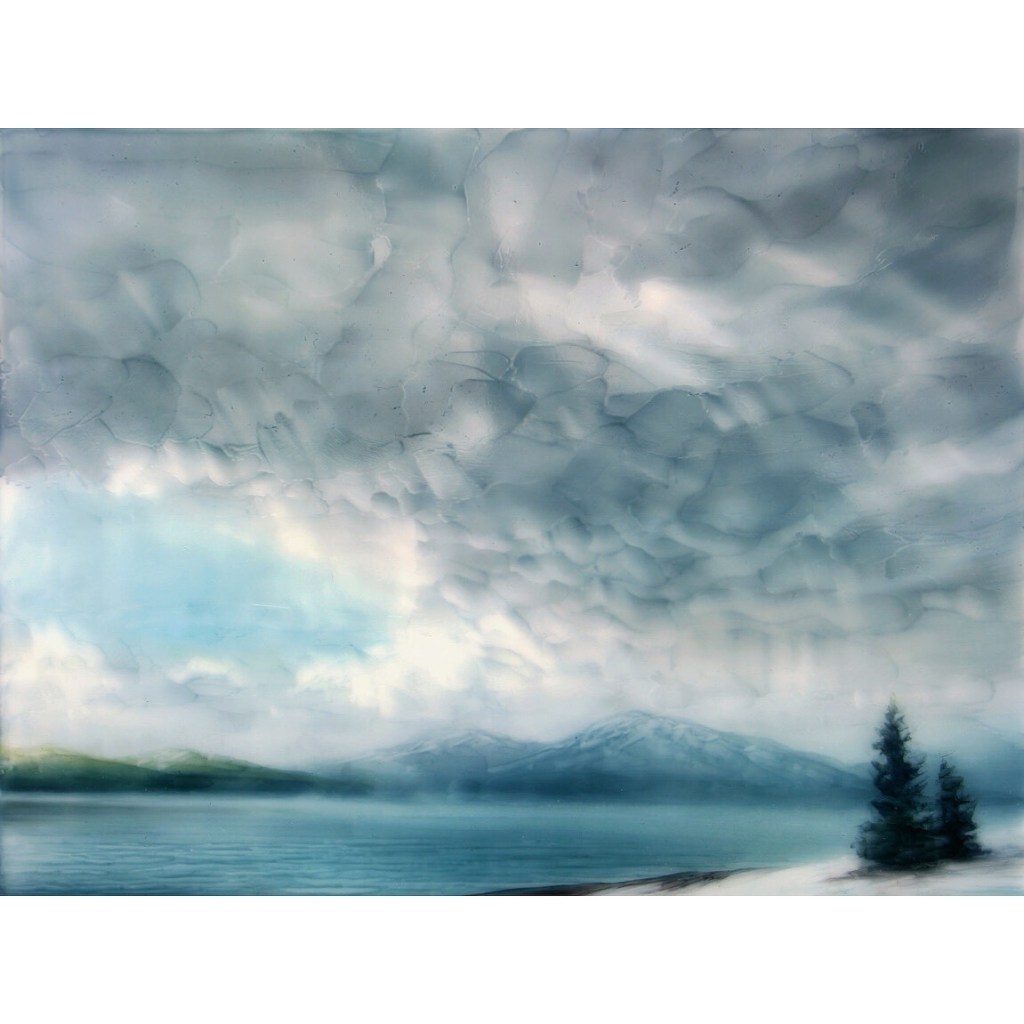This painting captures the spring transition here on Lake Pend Oreille. Currently much less snow than when I painted this a few weeks back.