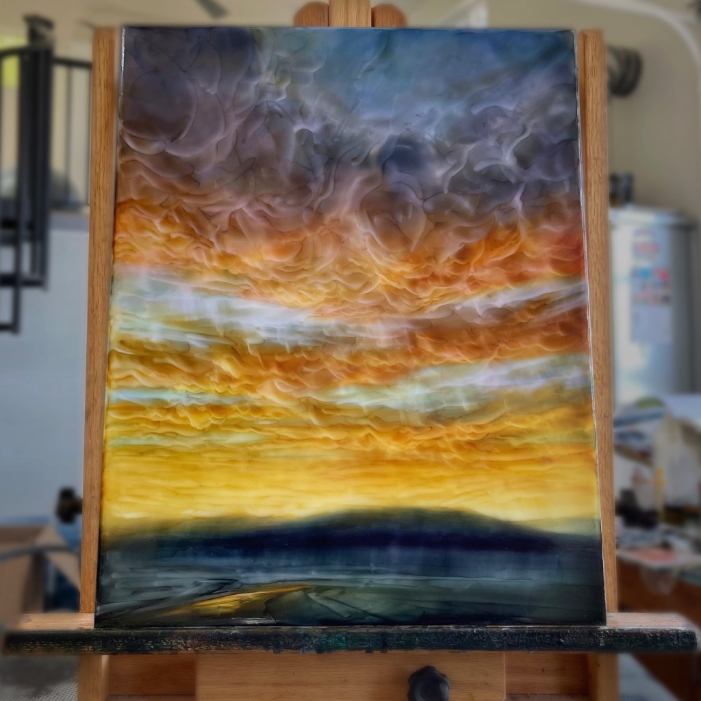 A little drama and a little beauty to start the week. I had painted a couple smaller pieces with a similar color scheme. Working on a couple new ones that are a bit larger.