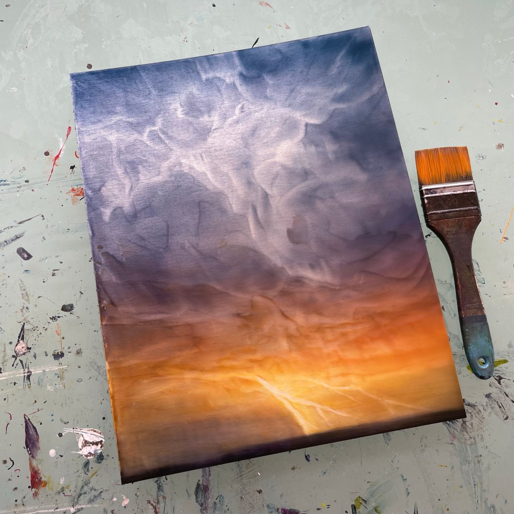 I am starting a new series of cloud paintings featuring a bit of electricity! I have a number of 11”x14” canvas panels and decided to do a deep dive on the subject. If I am still excited upon their completion I may do a very large painting on the theme. I follow my own enthusiasm always.