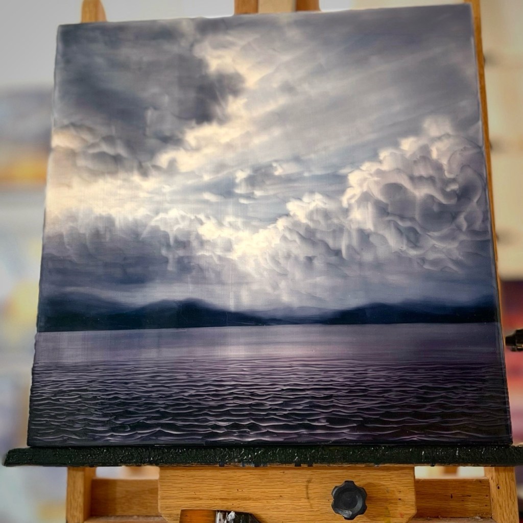 I really love this painting, I will probably let it hang around the studio for a little while. The title and vibe precisely capture my feelings this time of year. The daylight dwindles and the temperature plummet. The studio feels extra isolated with the snowbirds long gone. It feels grim and a bit exciting. The studio is my haven, dig in and of course dig out.