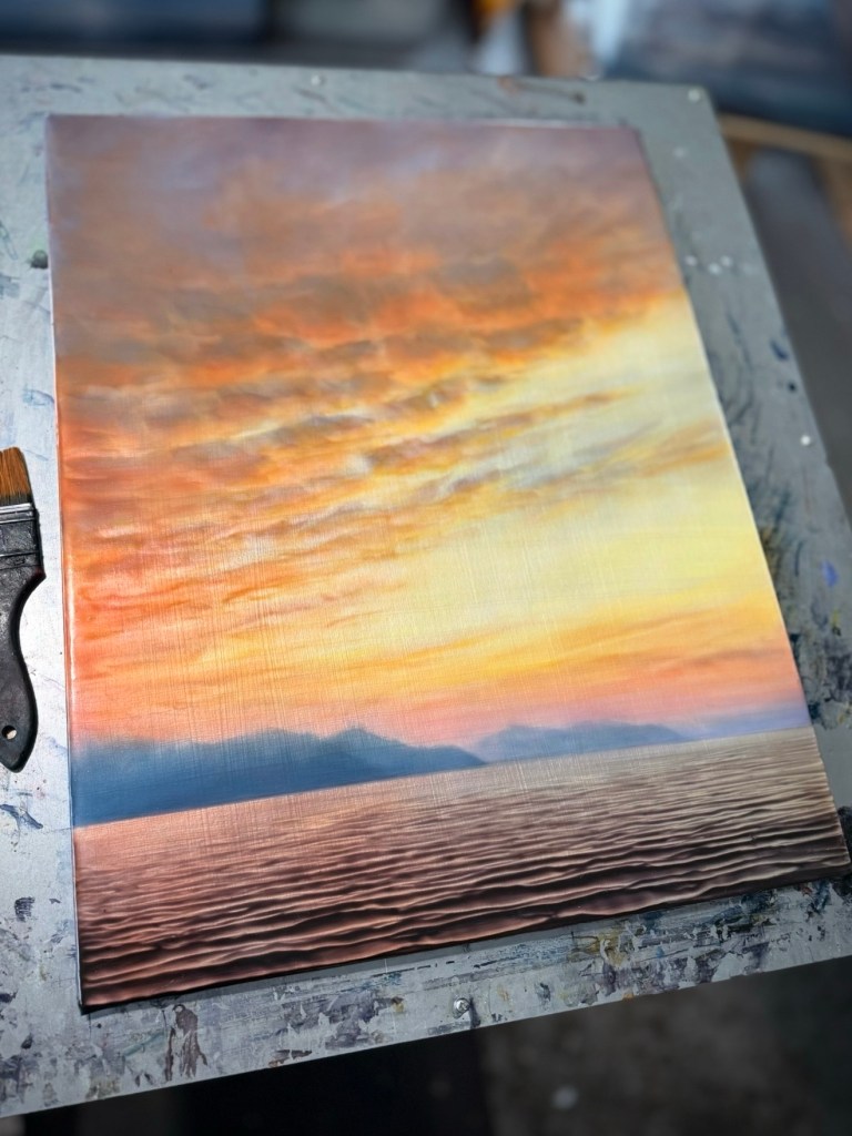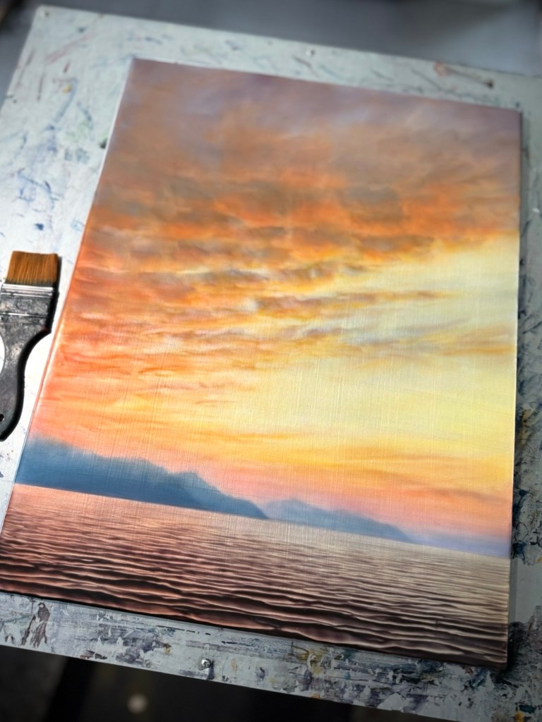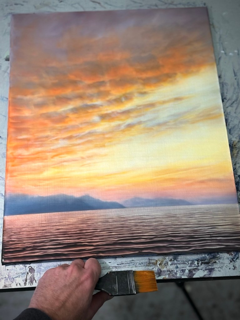 Finishing one last painting before Christmas! Like many people I will be spending time with family and friends over the holidays. I am so excited to see people that I love that I don’t see as often as I would like. It is also difficult for me to take time away from the studio, my obsessive nature no doubt.