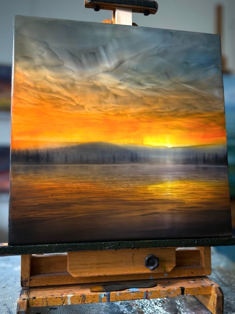 I spent some time on this piece late last week. I signed and varnished it over the weekend. I will be ordering a frame for this piece, considering it for a group landscape exhibit.