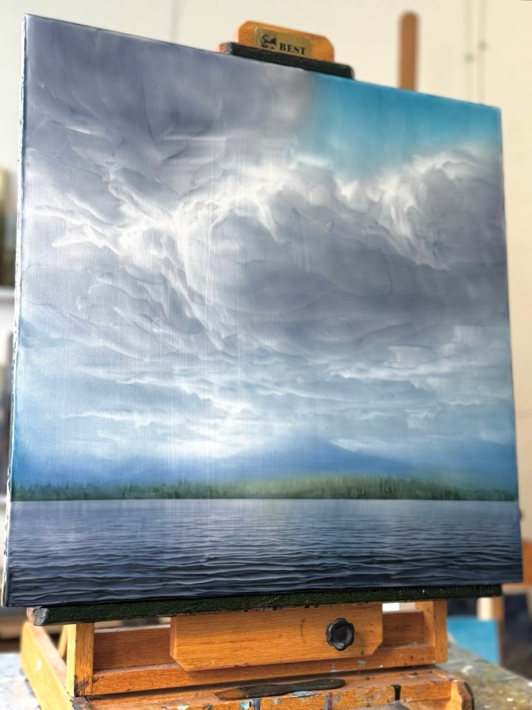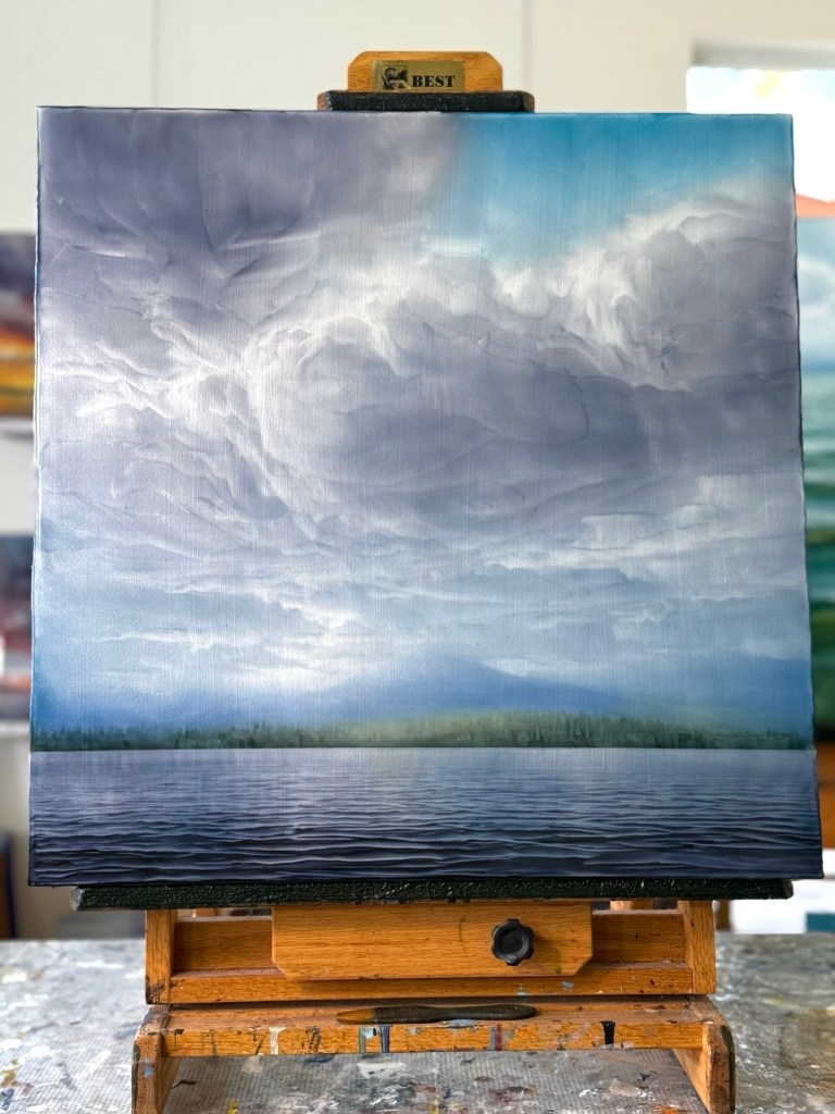 A brand new painting in the studio! I prepared a few of these two foot panels just before my trip to Asheville, NC. I am working on a few pieces at the moment, really enjoy the size of these pieces.