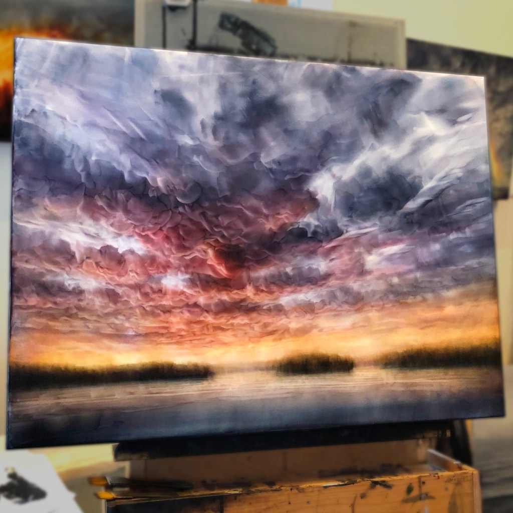 The beauty of the low sun and winter light. The magic moments are so brief, impossible to hold. Final studio capture of this piece.