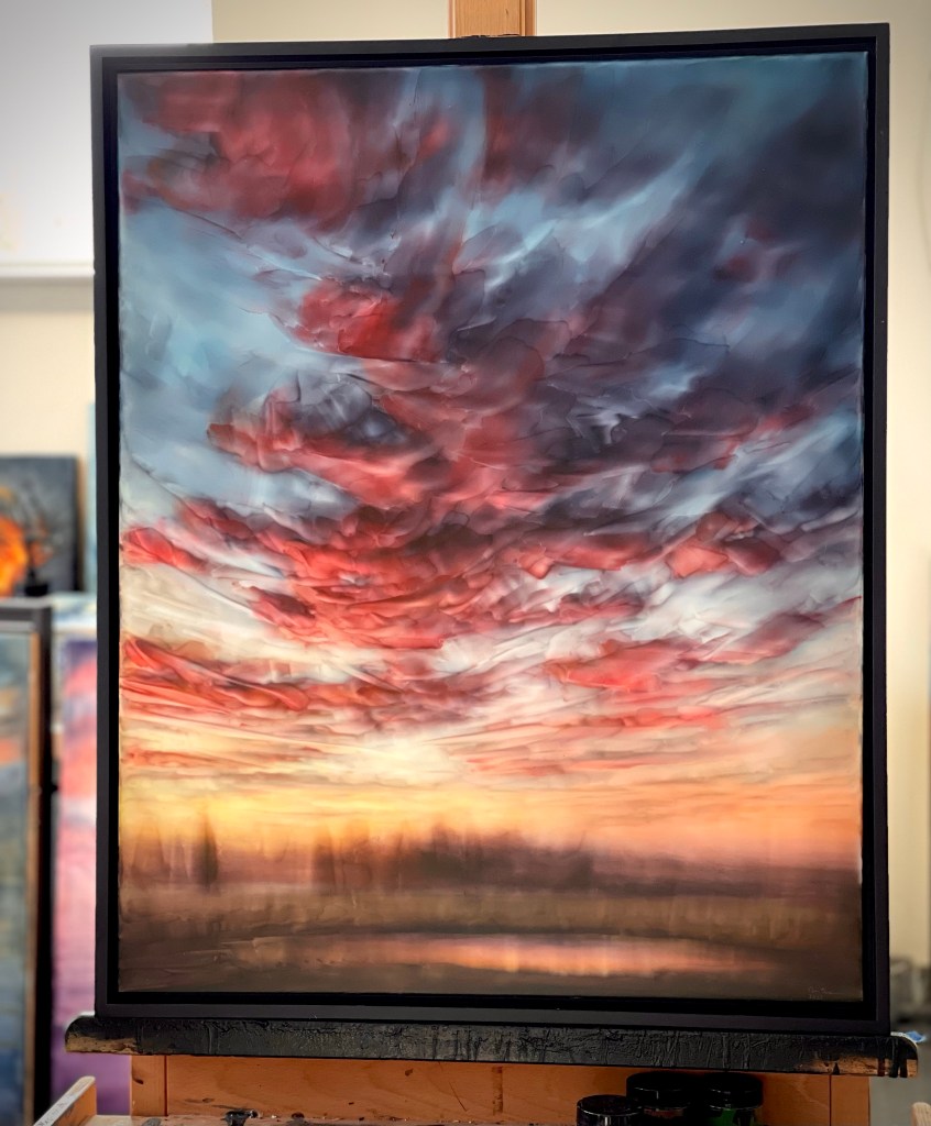 The painting is inspired by the smoke filled skies that are far too common in Summer.