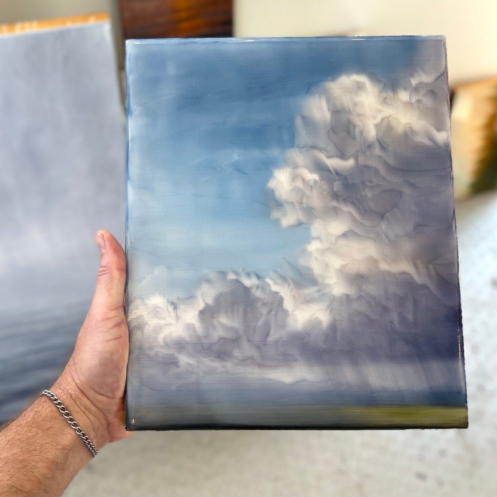 I have always loved watching clouds and weather systems rolling through. I very often find myself echoing nature in my studio, it is the heart of my work.