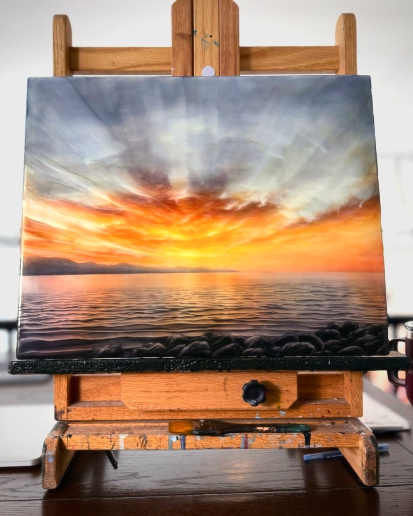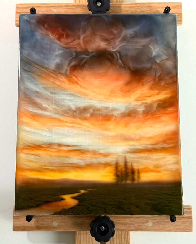 A serene new painting in the studio. I really enjoy working on these 18” x 24” boards, a very manageable size. I am excited to start on much larger paintings in the near future!!