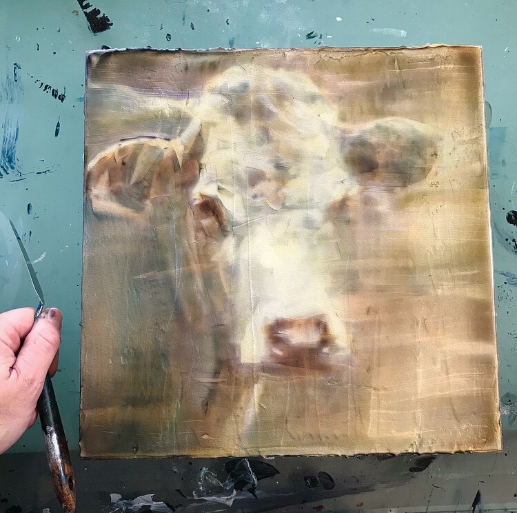 Painting a couple of cow portraits for a semi local Idaho gallery.