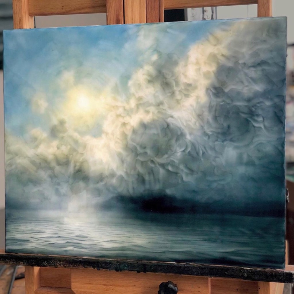 Final shot of this painting before I frame it. I am crazy busy varnishing, framing and installing hardware. All my work has to be wrapped boxed and shipped to Abend Gallery in Denver within a week!