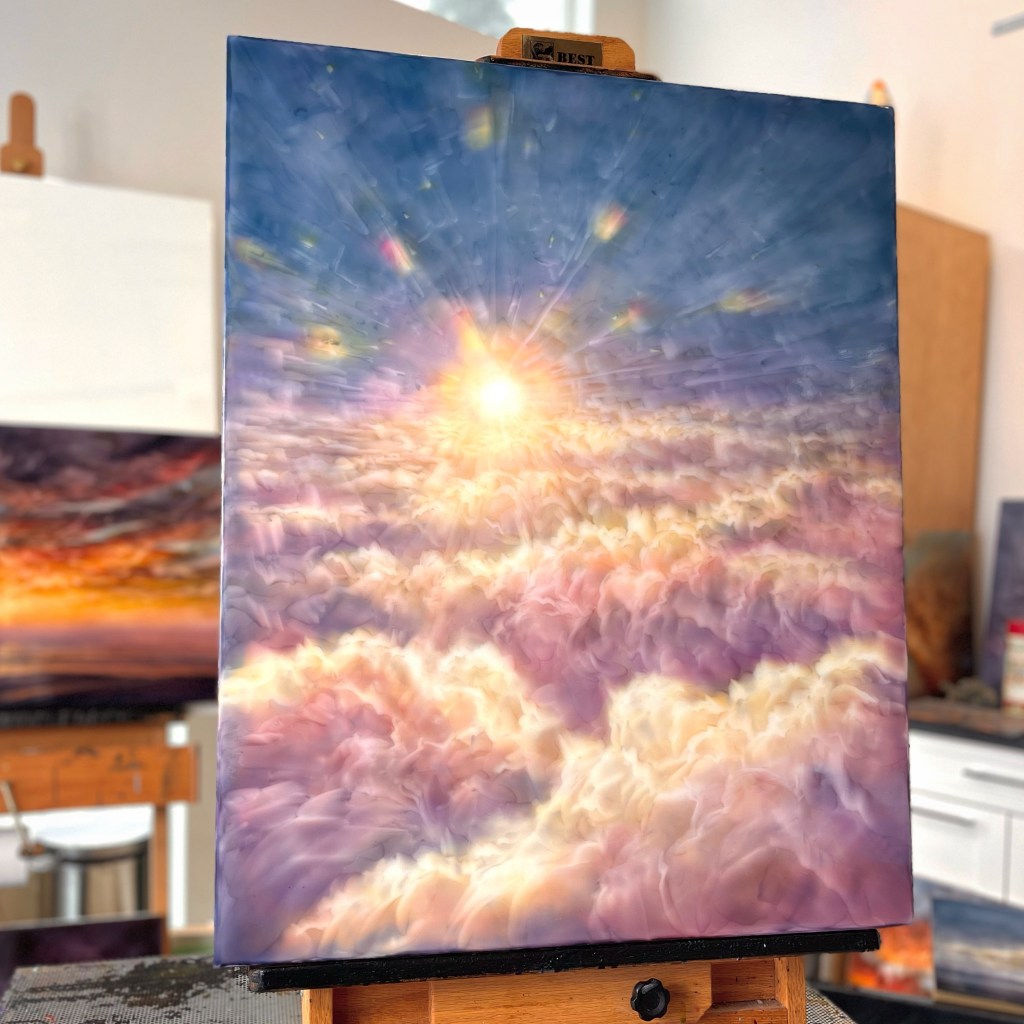 A large new sunset in the studio. It has become clear to me that I am obsessed with transitions of lighting. Fleeting moments that are so beautiful and momentary as to break your heart. This weekend I went to a celebration of life for my beloved Aunt. Life is just as temporary as the fading light… the reminders are growing. It is impossible not to dwell in these thoughts.