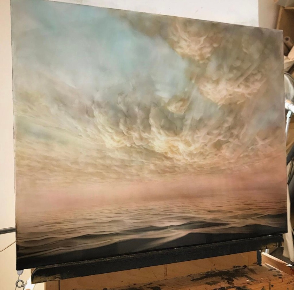 This painting really captures our dramatic skies of the season. Clouds pressing in but the blue of summer still shining through.