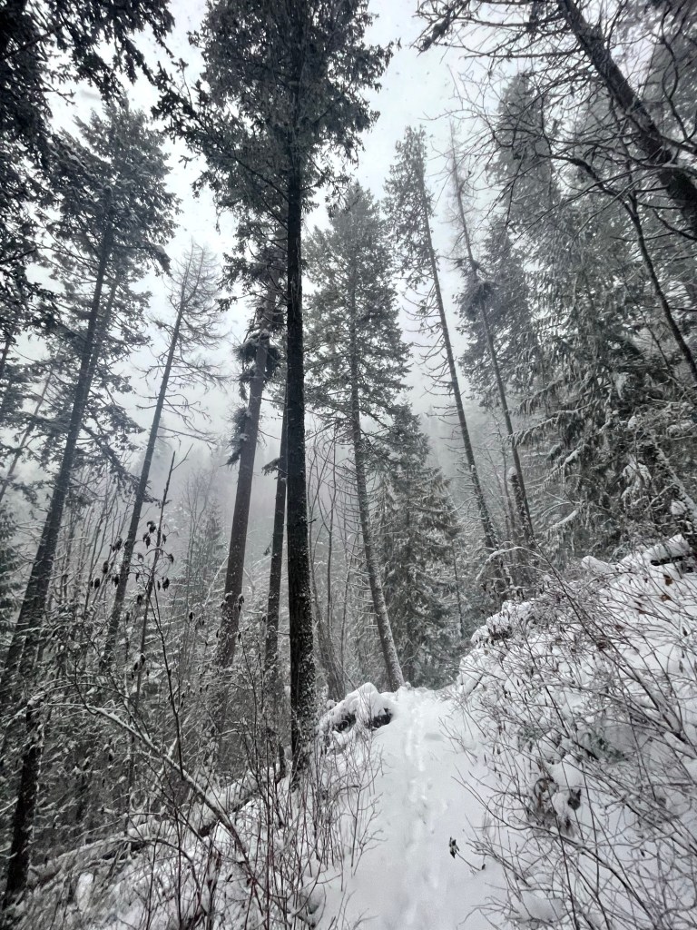 What was better as a child than a snow day? Now it doesn’t apply to me but the memories still warm my jaded heart. I just came back from my morning hike, impressive amount of snow coming down. The National Forest trail seems a little treacherous and the weather slightly dangerous. It felt great getting exercise and just a little thrilling. I take the thrills where I can find them these days.