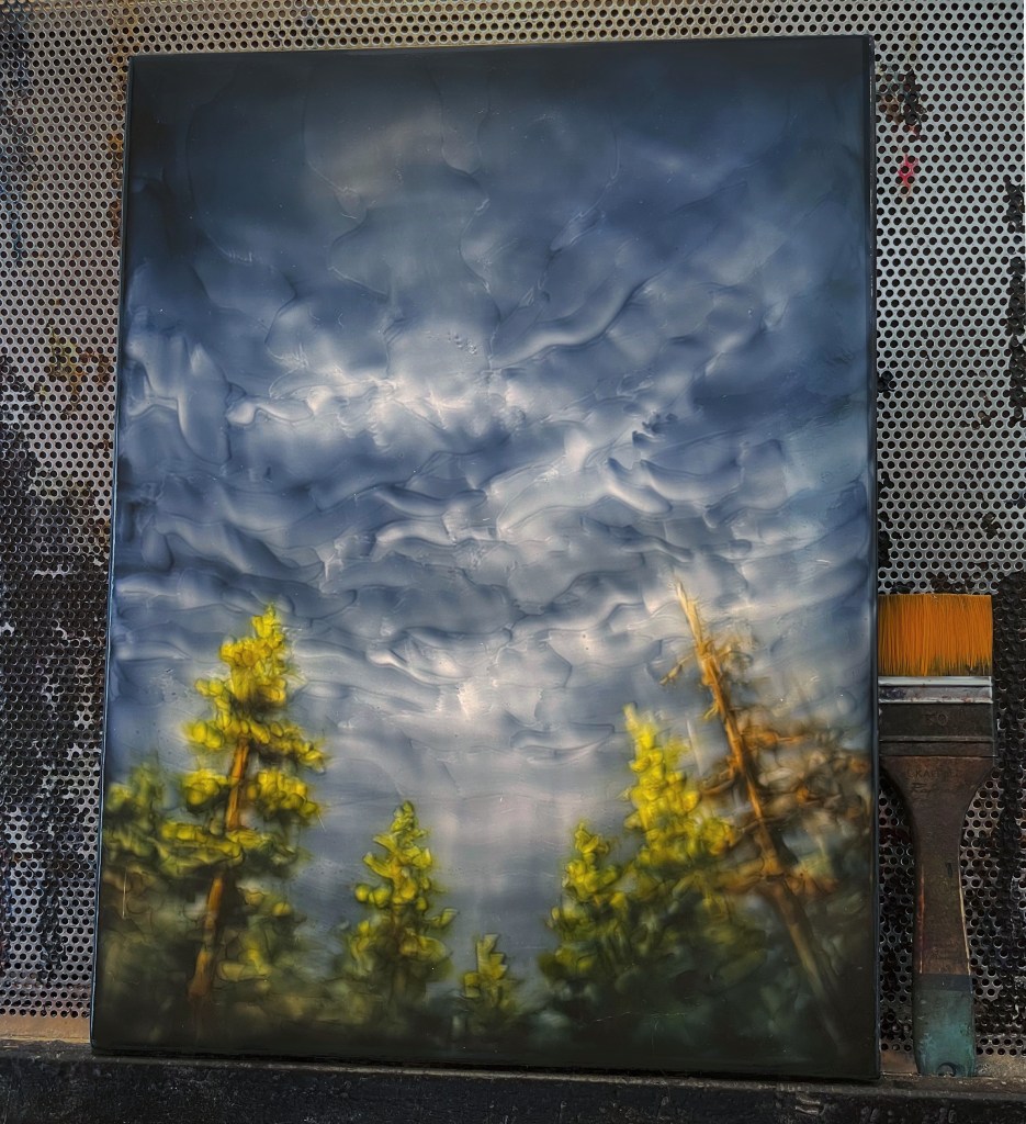 Some new shimmering work. There was a time when I thought a 24”x18” board was big… now it just seems like a fun size to paint. I am putting together a large collection of pieces with these dimensions, some should be available at my solo show June 11th at RiverSea Gallery in Astoria, Oregon.