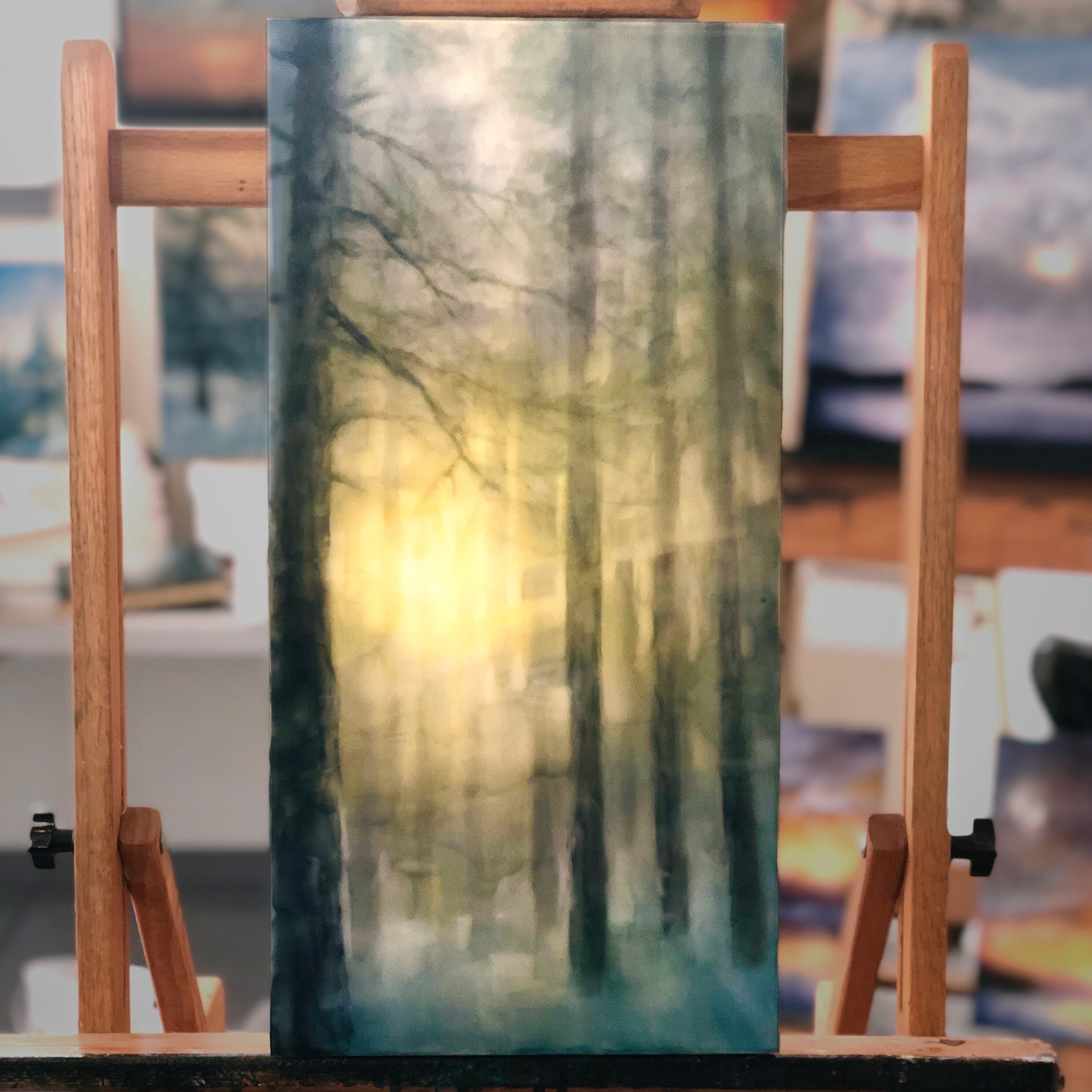 Continuing on with my forest imagery. I am putting together a collection of paintings for my “Woodlands” exhibit opening in May. The exhibit is at Higher Art Gallery in Traverse City, Michigan.