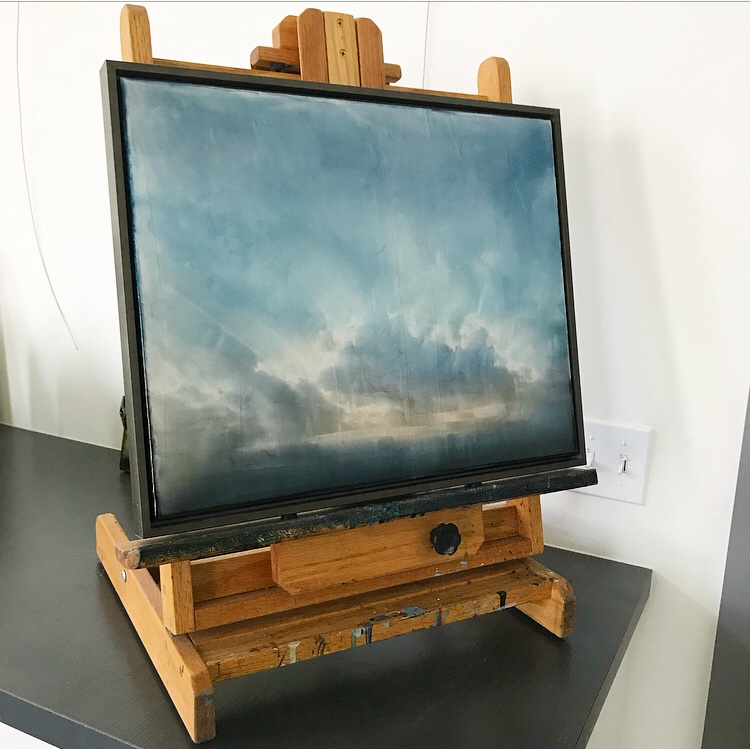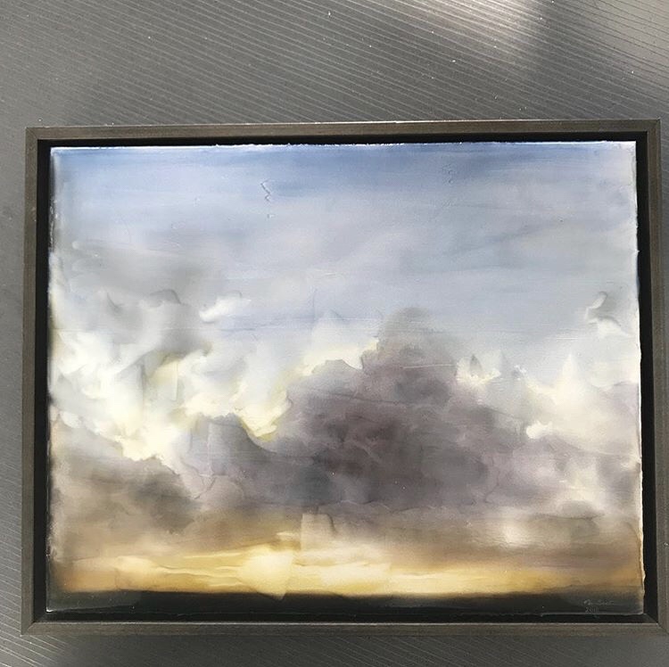 Once again I find myself obsessed with clouds and skies. This painting kept changing and restarting. I probably destroyed 2 perfectly good works before finding my way here. Unusual colors and lighting won me over in the end!