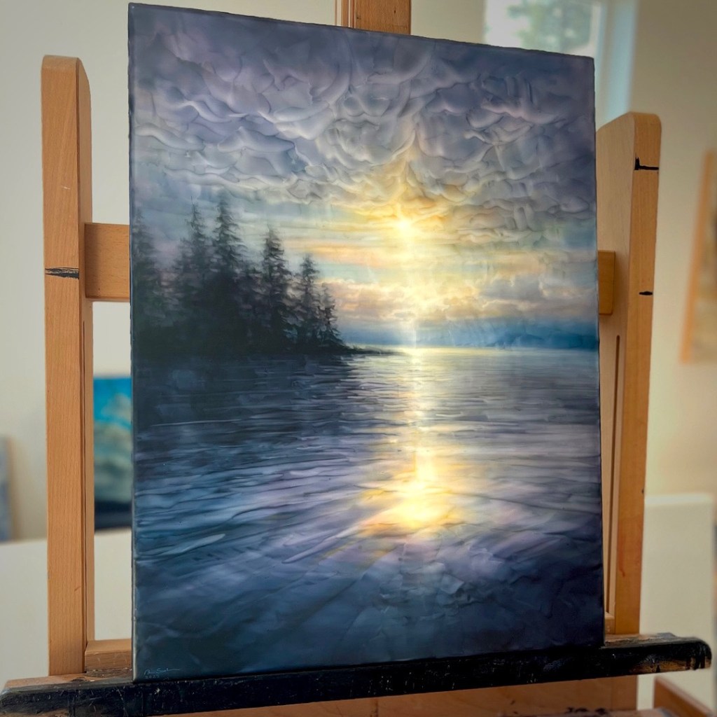 I just finished up my newest painting, “Things to Come”. It is a vibrant and meditative piece, it will probably be heading to a gallery in Florida. I still have to sign, varnish and frame the painting and of course package and ship so there is still work. Check out the silly IG reel to see it in motion in my studio!