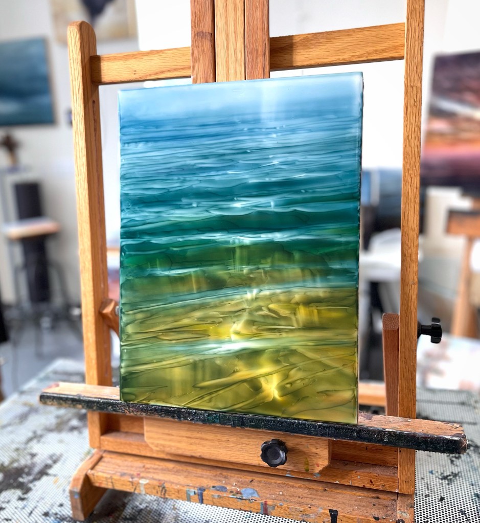 A new painting on the studio today. The clouds in this piece are relatively simple but utterly hypnotic. A little bit of Hawaii to brighten the day.
