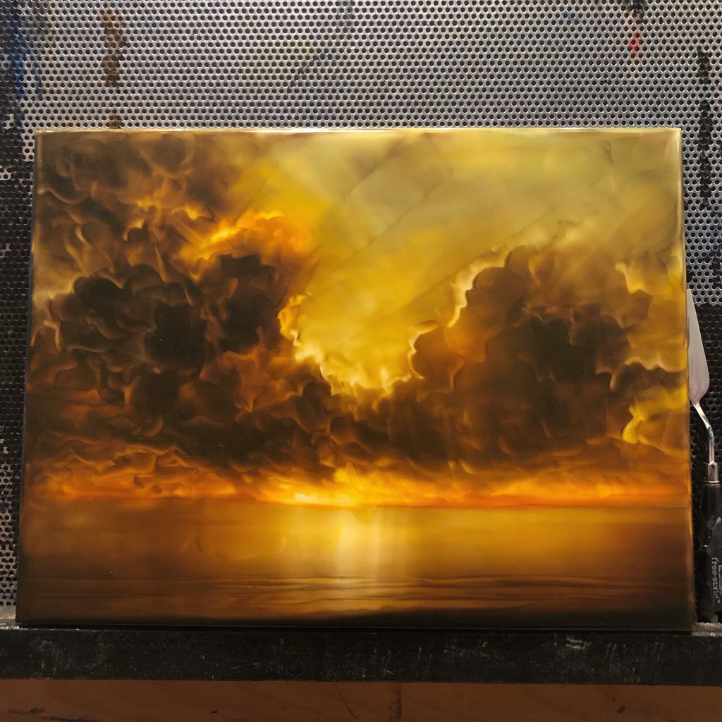 This was part of an ethereal collection of sky paintings I recently finished. Minimal sky paintings freed from the constraints of land.
