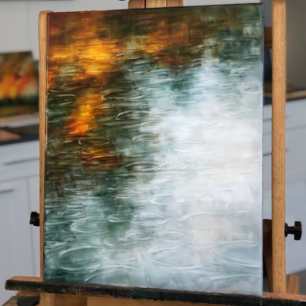 A small study in the studio today. Our snow has turned back to rain and watching it on the water is always a meditative experience.