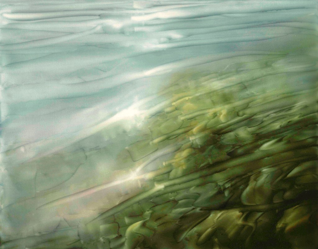 Final image of this painting from a High Resolution scan. Minimalist approach to the shine of water.