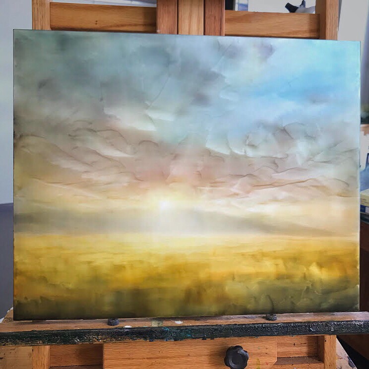 I have been working on this commission, inspired by the big open spaces of Montana. I really enjoyed the subtle blending of hues in the field, the glow of light. I just love that kind of country!