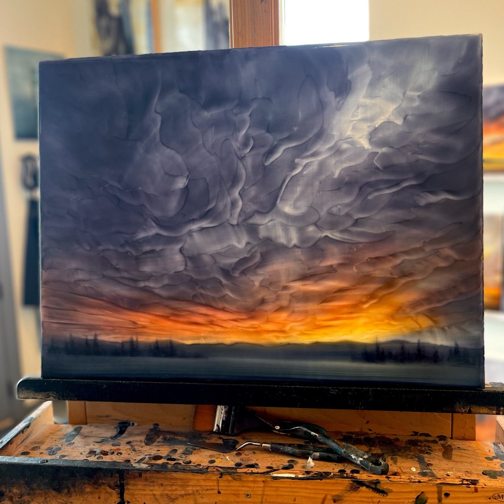 I used to consider 18”x24” to be a large painting. They now seem small but are a really great size to work on. Plenty of room for expression but small enough to cover relatively quickly, I am working on a series of these misty images with plans to paint much larger work in the near future. My plans are always fluid, always following my enthusiasm of the moment.