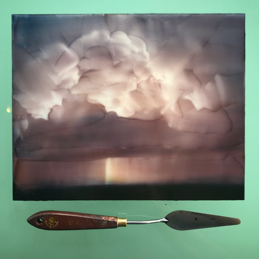 I am currently doing some subtle color layers on this sunset painting. I find myself with a lot of large works in early stages. This one is getting close.