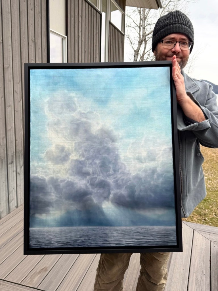 A large cloudscape in the studio. This is part of an extensive collection of new works.