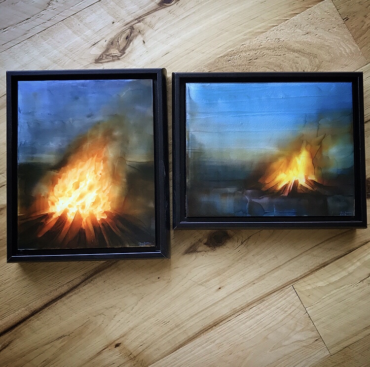 Two small paintings headed to this pop up gallery in Genesis, Idaho. It is a fall show and some of my fire paintings were requested!