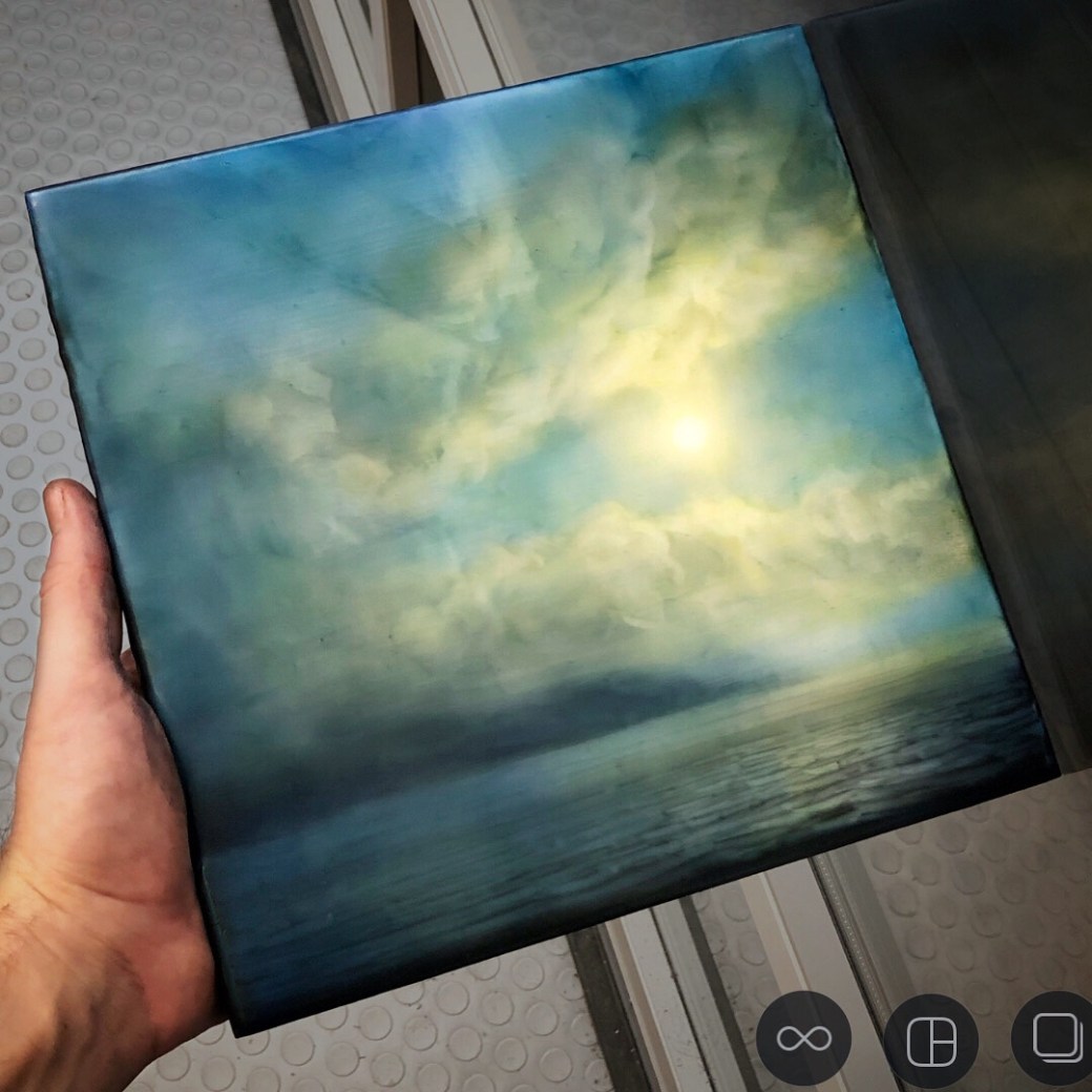 Studio light alone shines on this moonscape commission. Last look at this one, it was packed up and shipped to its new home.