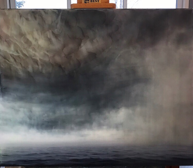 This painting is part of an ongoing series I keep adding to. The images are all big storms over water. They have a very heavy psychological feel. I am utterly obsessed with this collection and keep adding to it!