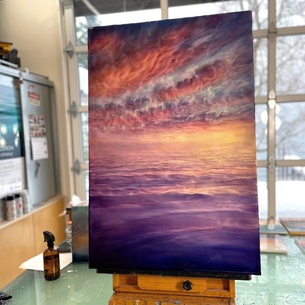 A new colorful painting in the studio this morning. I have six 12”x12” panels and I am dedicating them all to water imagery.