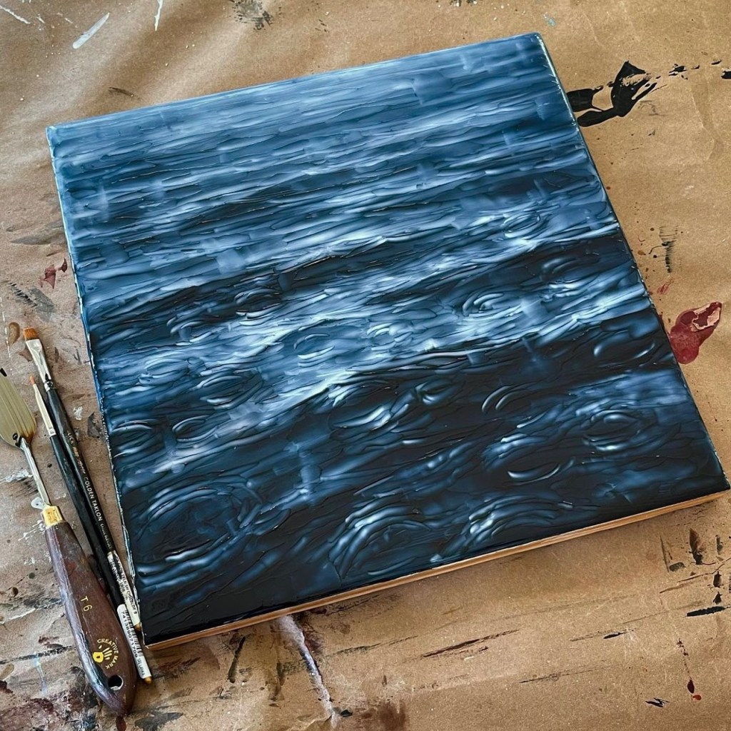 A moody piece that is a preview to the dark coming months. I have spent a lot of time painting at this scale. I will be working on much larger pieces in the coming months.