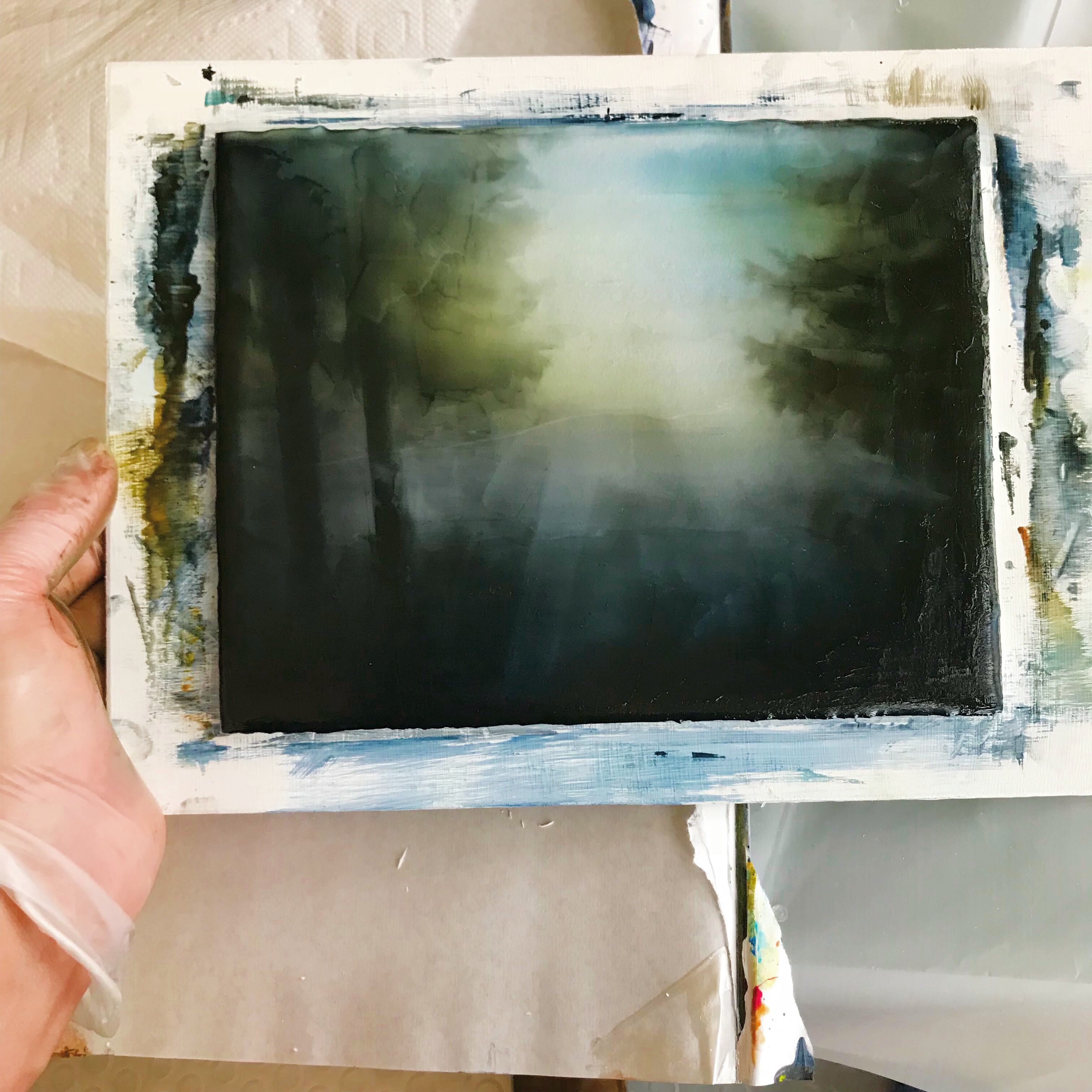 This little 9″x7″ painting was a little experiment. I am playing around with some ideas with an eye towards larger work.