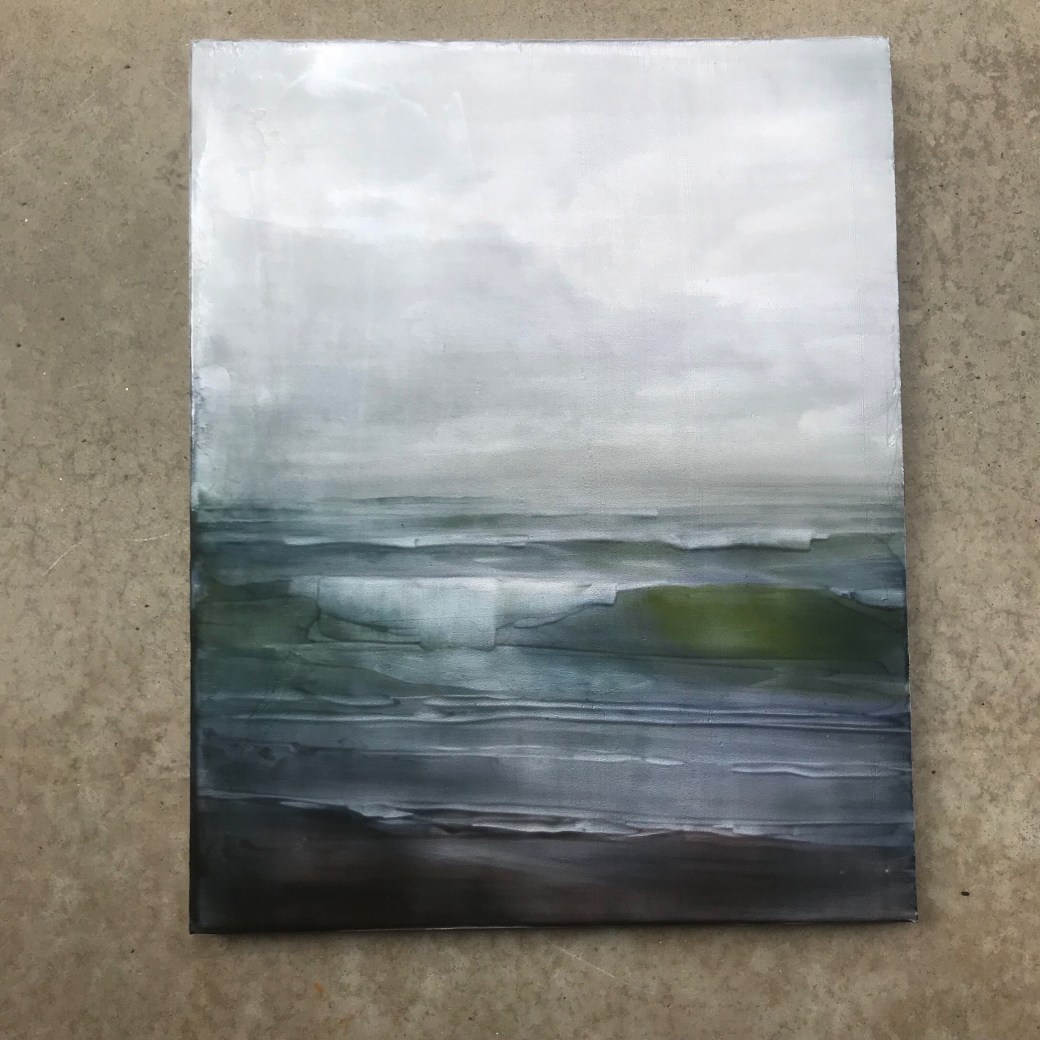 Two 16″x20″ wave paintings I recently completed. I am focusing on mark making and blending colors on the boards in order to create a vibrant feel.