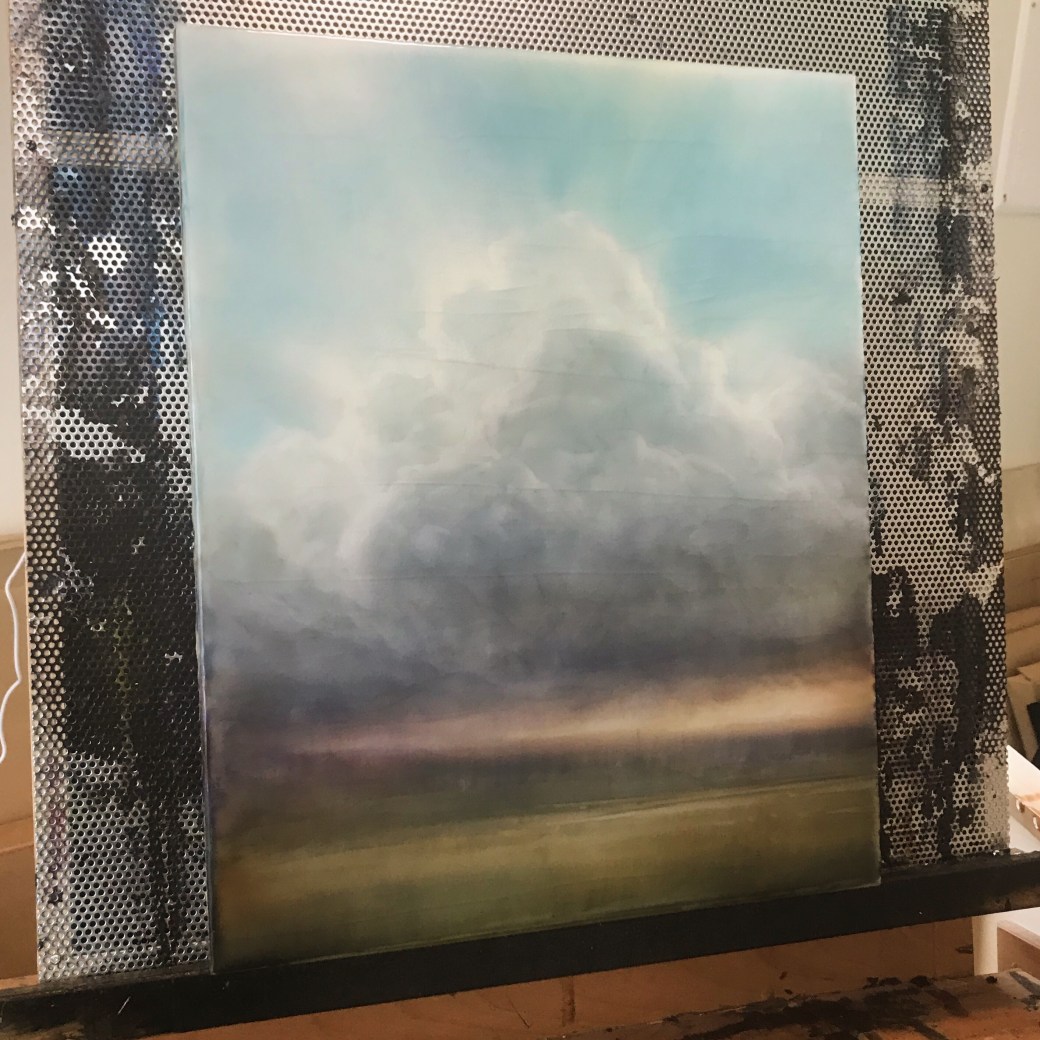 I am painting a couple of atmospheric paintings inspired by Lake Coeur d’Alene. I was there on a weekend outing and saw some pretty spectacular clouds over the lake. The lighting was very dramatic and inspirational.This is the first painting I have done, it is 16’x16″. I am pretty pleased with the outcome but it doesn’t begin to do my memory justice. I will post the next one when I complete it as well.