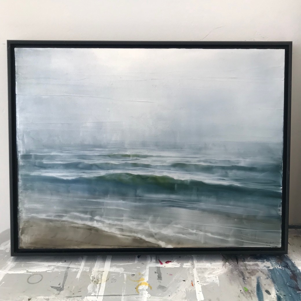 I am working on a series of storm inspired paintings. Watching a big thunderstorm crawl across the expansive lake gives one a sense of place, a very small place. This particular painting is much more of a calm meditative image. They will get more apocalyptic!