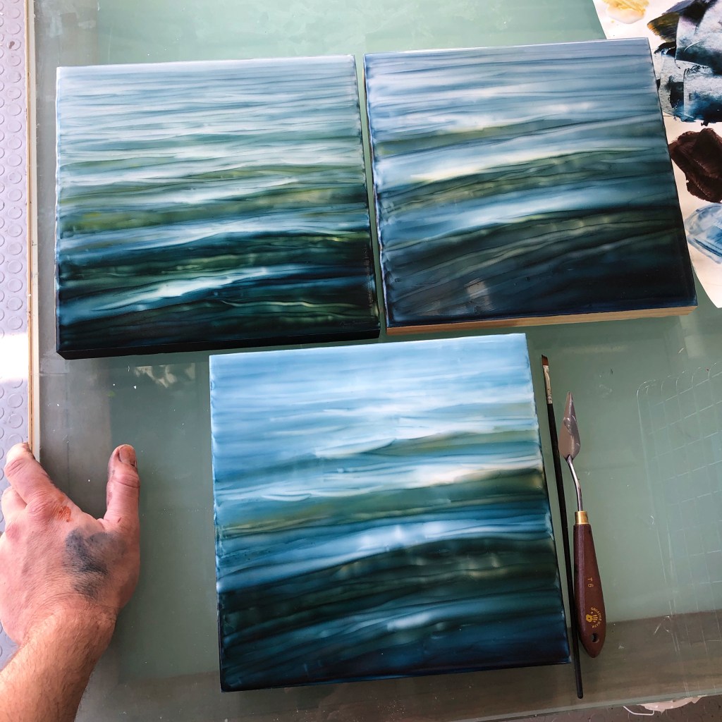 Three small water paintings on wood panel. The top two paintings are sold but the bottom one is available!