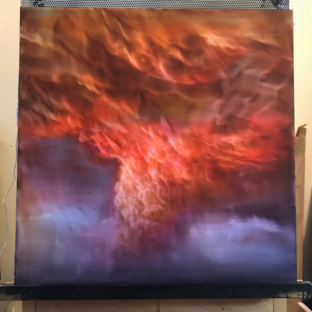 My newest painting in an ongoing series I call Apocalyptic Bloom. I have been trying to build a collection of these works but have sold off a few. Putting together and intriguing show.