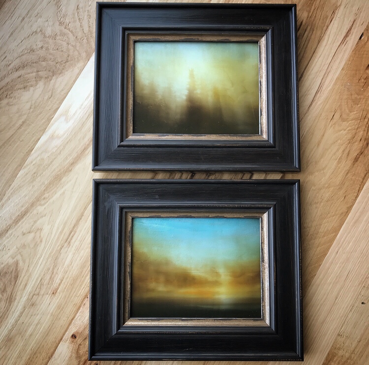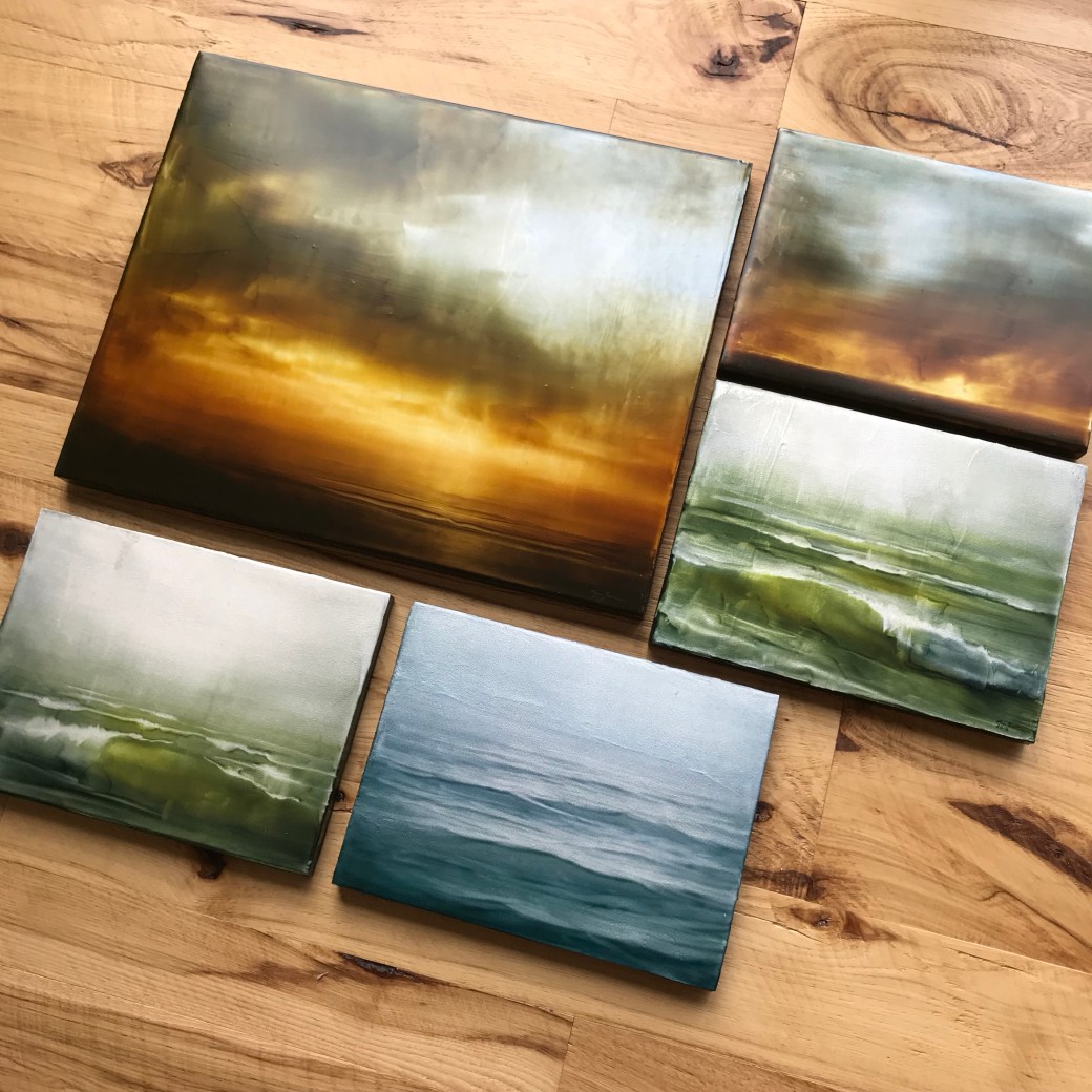 This is the latest selection of paintings making their way to the Elliot Fouts Gallery in Sacramento, California. This collection is made up of four 12”x9” paintings and one 16”x20” painting. All acrylic/open acrylic paint on cradled birch wood.