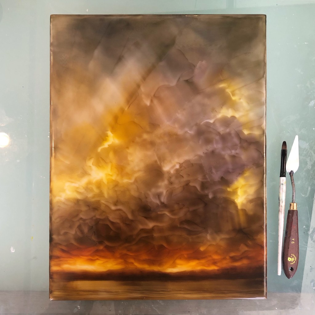 A new painting in the studio today. This piece is a love letter to light and atmosphere. A few images from the easel.