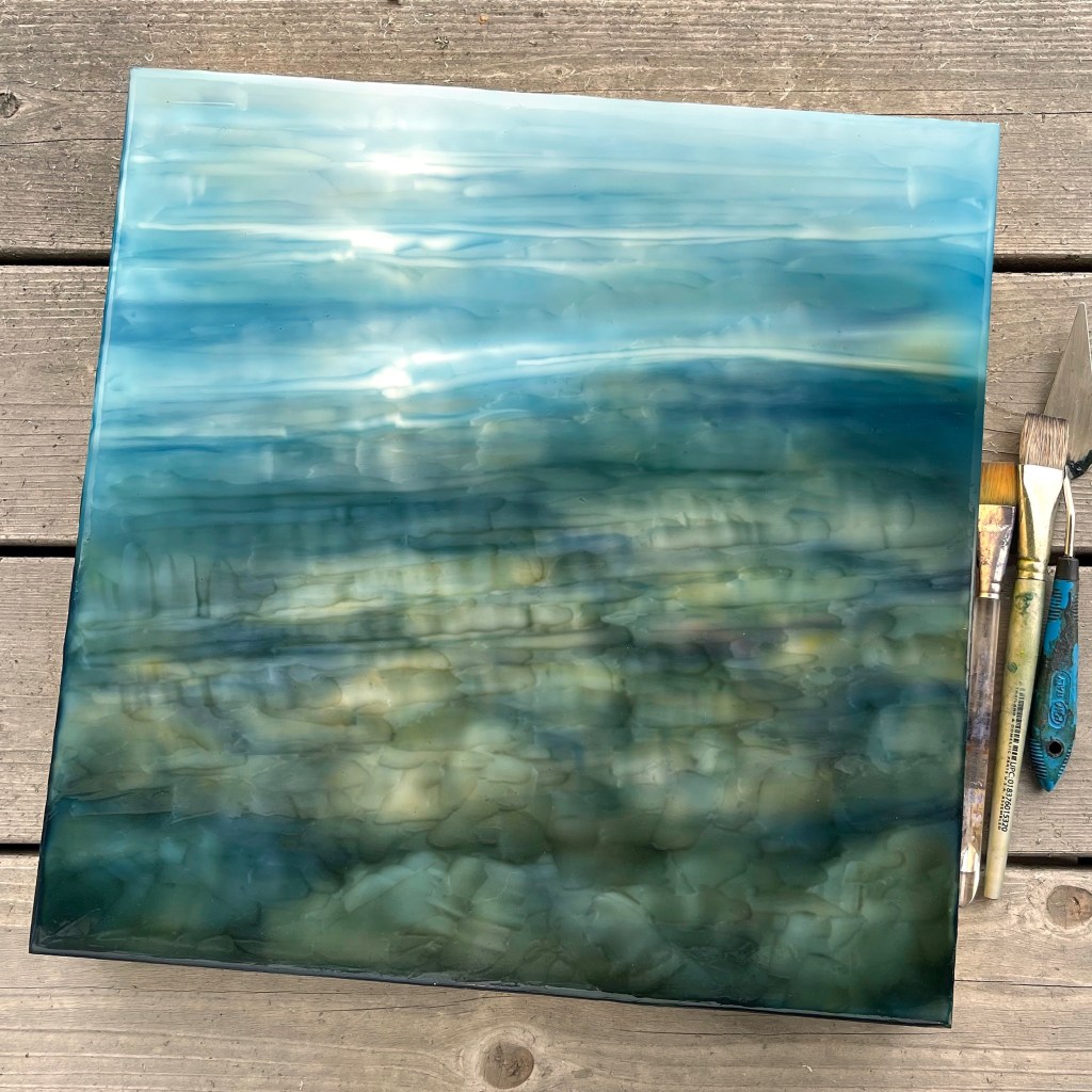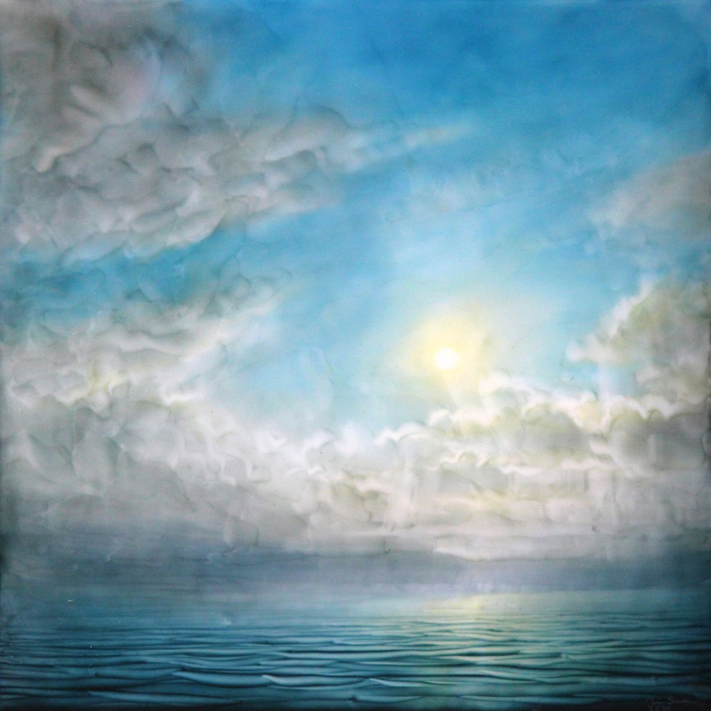 I am working on a little collection of these 16” square water paintings. I put gold leaf on the 2” cradled side rather than framing the pieces. Some of these should be at my June solo show at RiverSea Gallery in Astoria, Oregon.