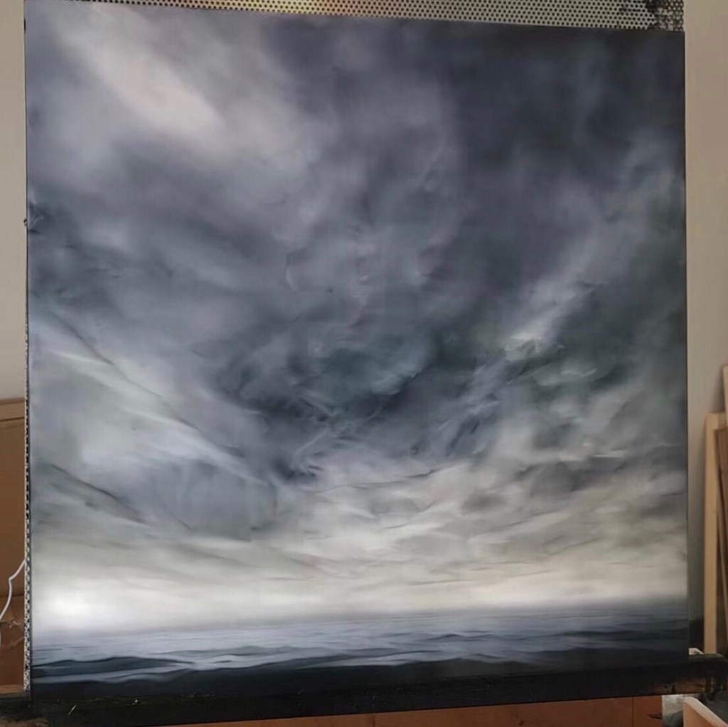 I am painting a collection of square 20” landscapes on wooden panels. This is the third painting in the series. I am hoping to do four more paintings this size!