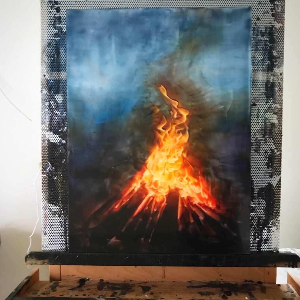 One of my larger campfire paintings. This one is heading to Vashon Island for my next exhibit which opens October 4th. I will post more details about this show soon!
