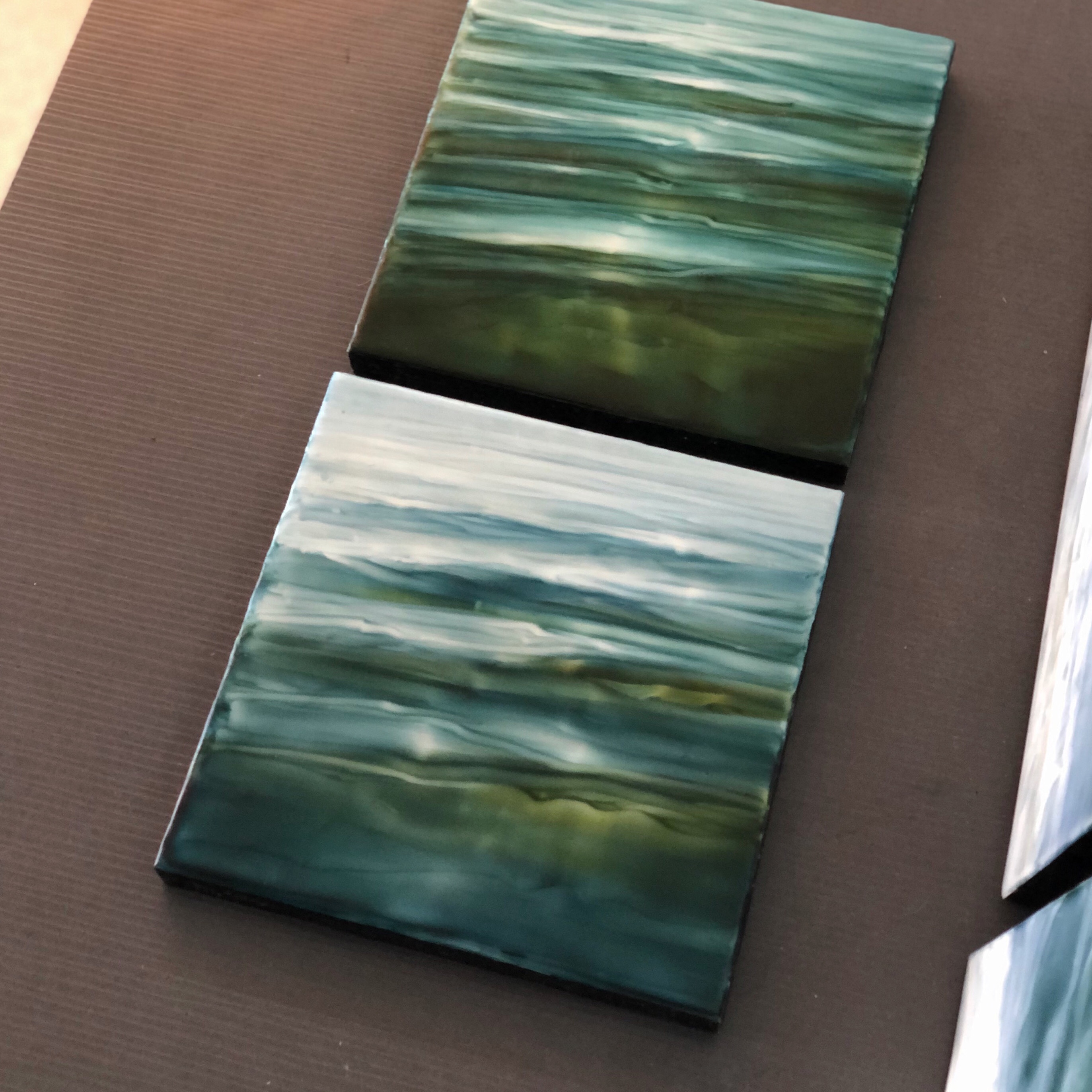 Two recent water squares have shipped to an art buyer in Boise, Idaho. Hard to capture the magic of these in a photograph, the colors always seem to shift.
